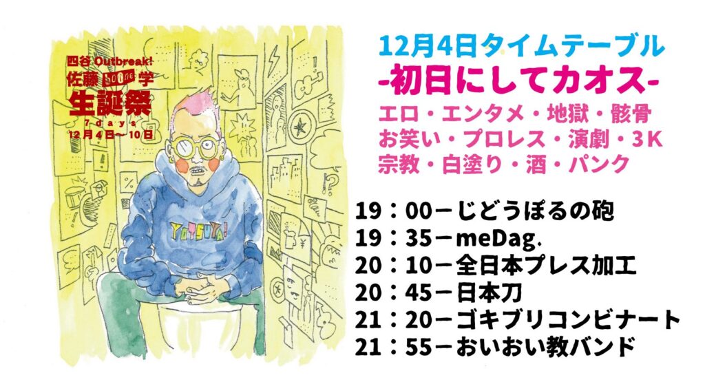 12月4日 四谷アウトブレイクにて店長佐藤BOONE学氏生誕祭にて 久々にミニミュージカルをやります!!