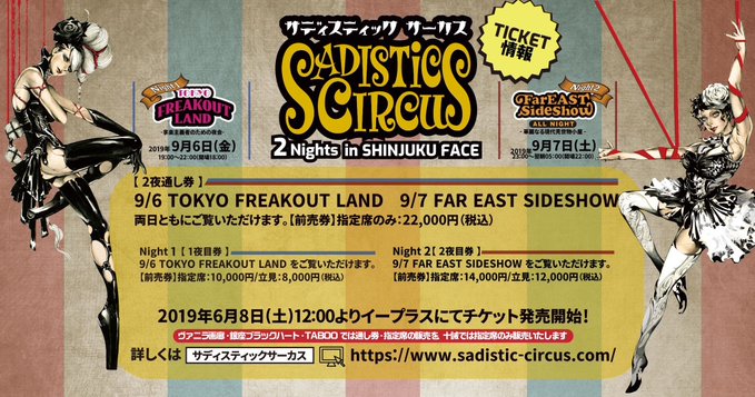 真夜中の巨大な見世物小屋「SADISTIC CIRCUS」完全復活! 日本版オリジナル・ダーク・サーカス再来。