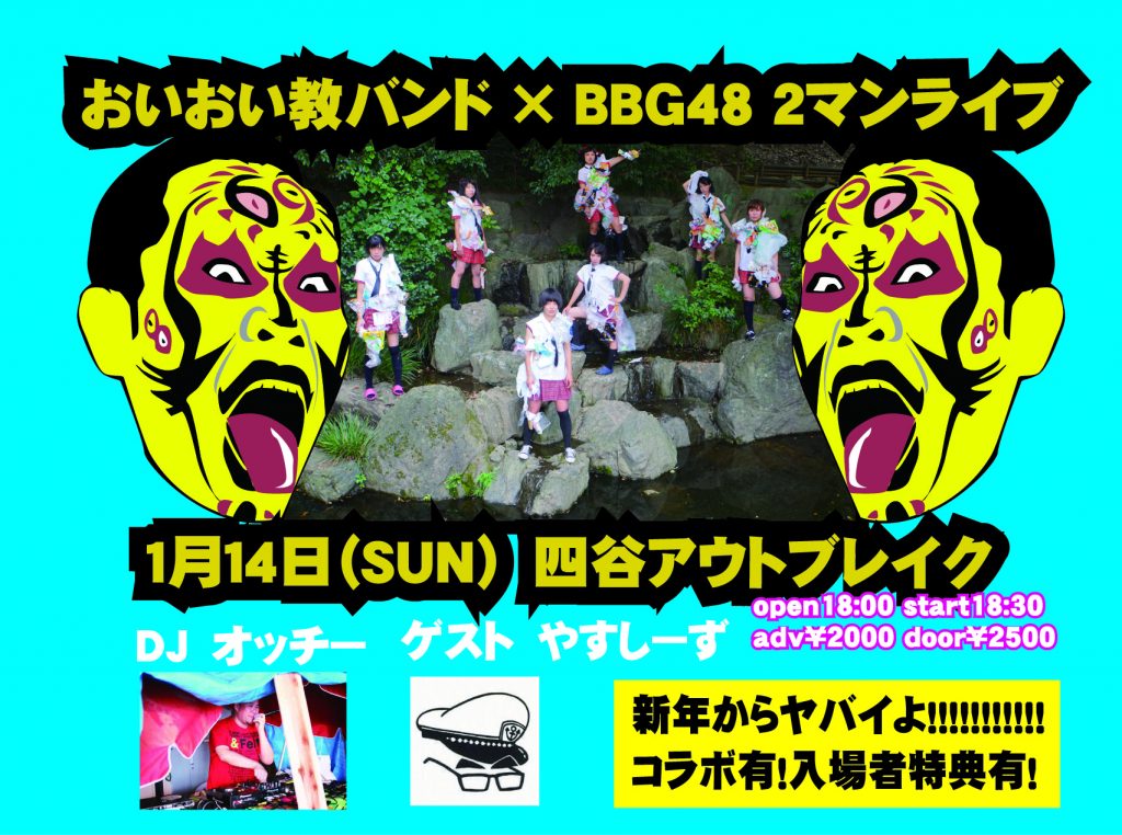 1月14日「おいおい教vsBBG48」 2017 12/07 2017年12月7日 四谷アウトブレイクhttp://www.hor-outbreak.com/live.php お知らせ この記事が気に入ったら フォローしてね! Follow @gokiburikonbina よかったらシェアしてね! URLをコピーしました! URLをコピーしました! 12月24日ヘブンスドアにてBBG48 12月31日ヘブンスドアにてBBG48 関連記事 本公演参加者募集 2026年3月28日 5月31日 三軒茶屋ヘブンスドアにてライブ 2026年3月26日 10月18日〜21日 本公演 2026年3月26日 12月30日三軒茶屋ヘブンスドアにてライブ 2025年12月21日 1/10 早稲田ZONE-Bにてライブ 2025年12月8日 マザリのツアーに部分的に参加します。 2025年11月7日 11/23 タイニーウルトラ(我修院達子)生誕祭に参加します。 2025年9月23日 10/26 三茶ヘブンスドアにてライブ 2025年9月23日