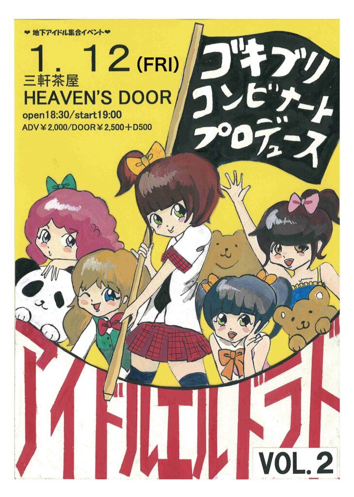 アングラ演劇界で悪名をはせるゴキブリコンビナートが自身がプロデュースするゲテモノアイドルユニットBBG48を筆頭に様々なタイプの地下アイドルを集合させて行うアイドルイベント。選りすぐりの強力ラインナップで臨みます。